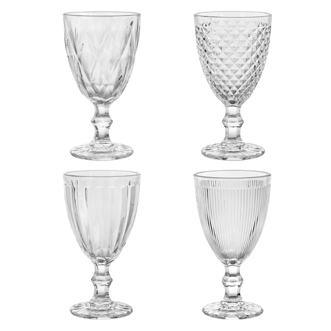 Copas de vino vintage, copas de vino tinto de 10 onzas, cristalería de tallo transparente, Copas de agua en relieve para boda, fiesta, restaurante