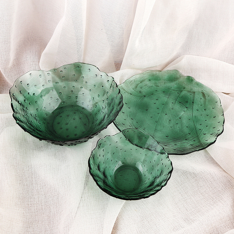 Set di piatti nordici creativi per cena e insalatiera Set di posate da Dessert verde scuro per la casa martello piatto di frutta in vetro