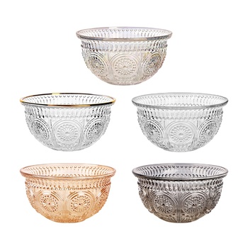 Rilievo europeo insalata di verdure ciotola di semi di girasole ciotola di vetro ciotola di iris da dessert ciotola